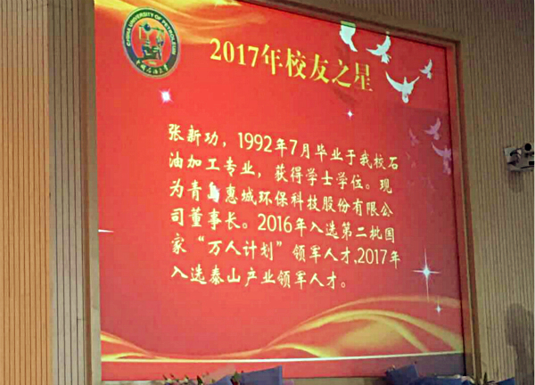 日前,我公司董事長張新功獲評中國石油大學(xué)(華東)“校友之星”榮譽(yù)稱號。10月2日,張新功董事長受邀出席“追求卓越、砥礪前行”主題校友返校日慶祝大會并接受“校友之星”榮譽(yù)表彰。大會共表彰了9位在本職崗位上勇于開拓、不斷創(chuàng)新、業(yè)績卓越、為國家發(fā)展建設(shè)做出重大貢獻(xiàn)的杰出校友。