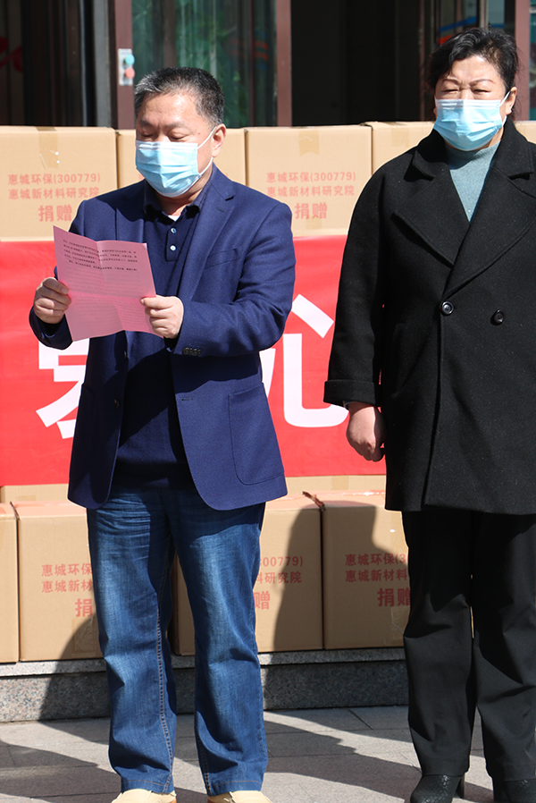 公司董事長張新功表示,公司自成立以來始終堅持讓“社會尊重”的管理目標,特別是在深交所創(chuàng)業(yè)板上市后更應以實際行動履行上市公司的社會責任和擔當。目前新冠肺炎疫情形勢依然嚴峻,惠城環(huán)保將與社會各界一道,持續(xù)為抗“疫”傾情獻力,踐行企業(yè)的使命和擔當。